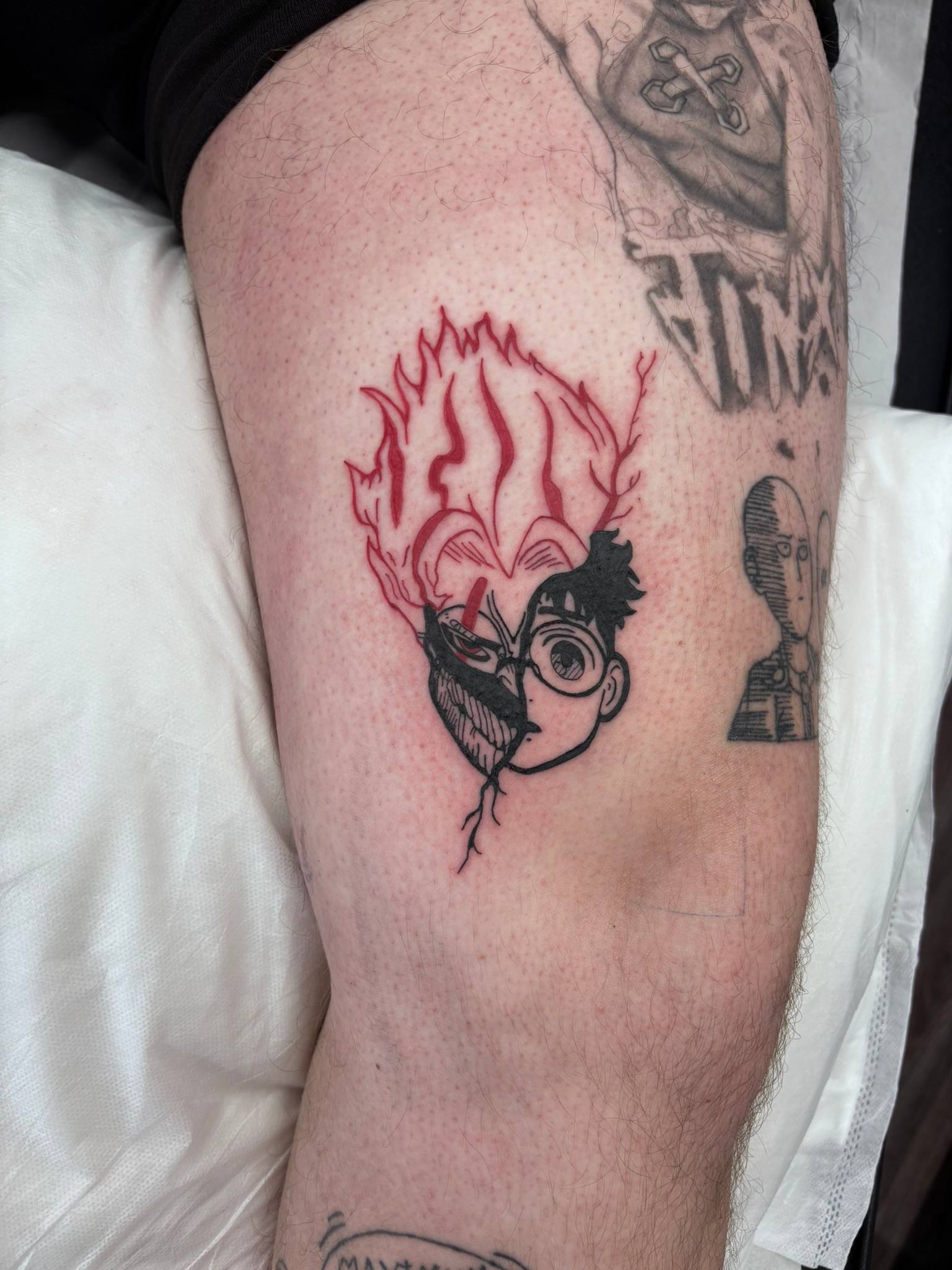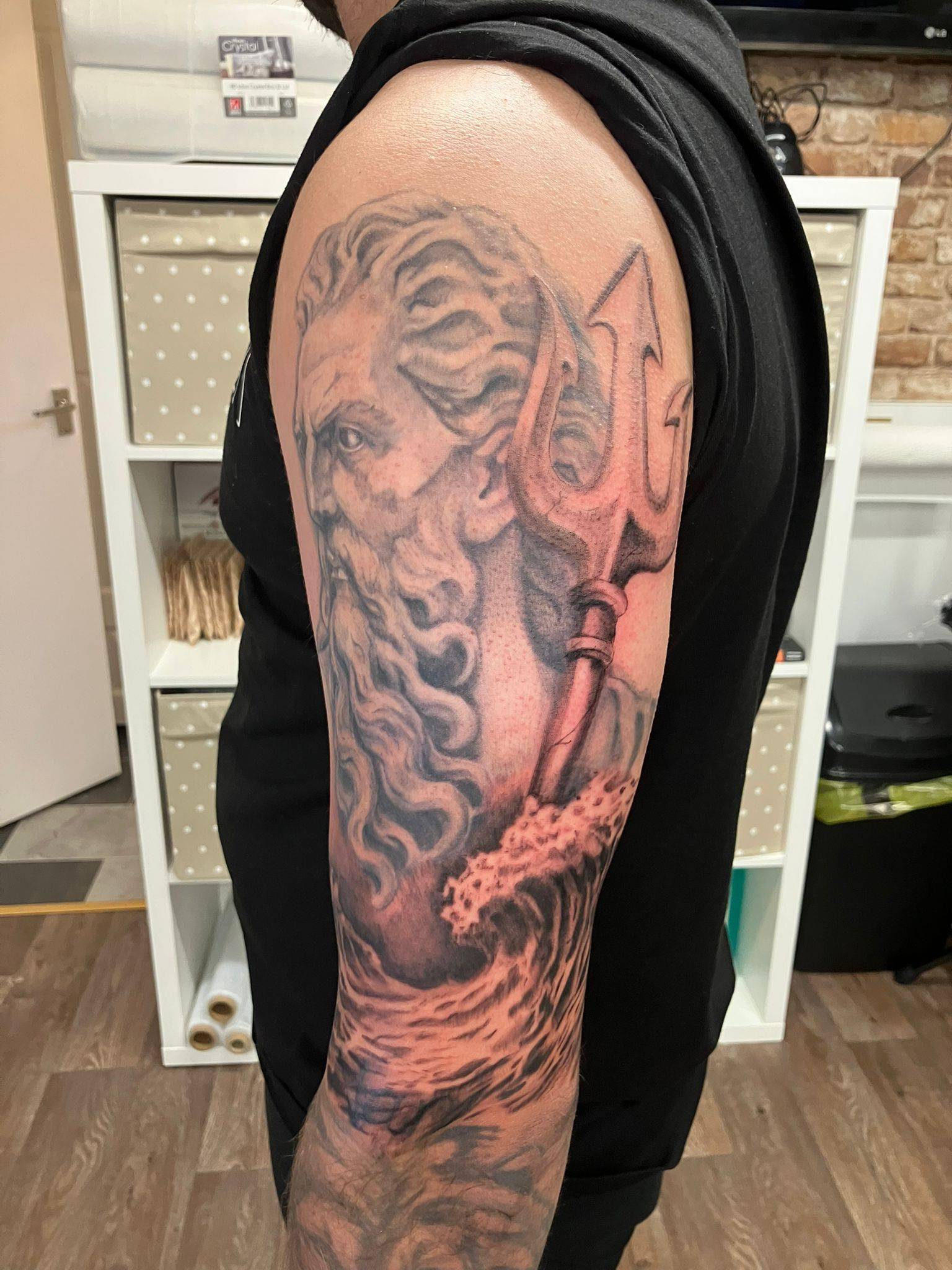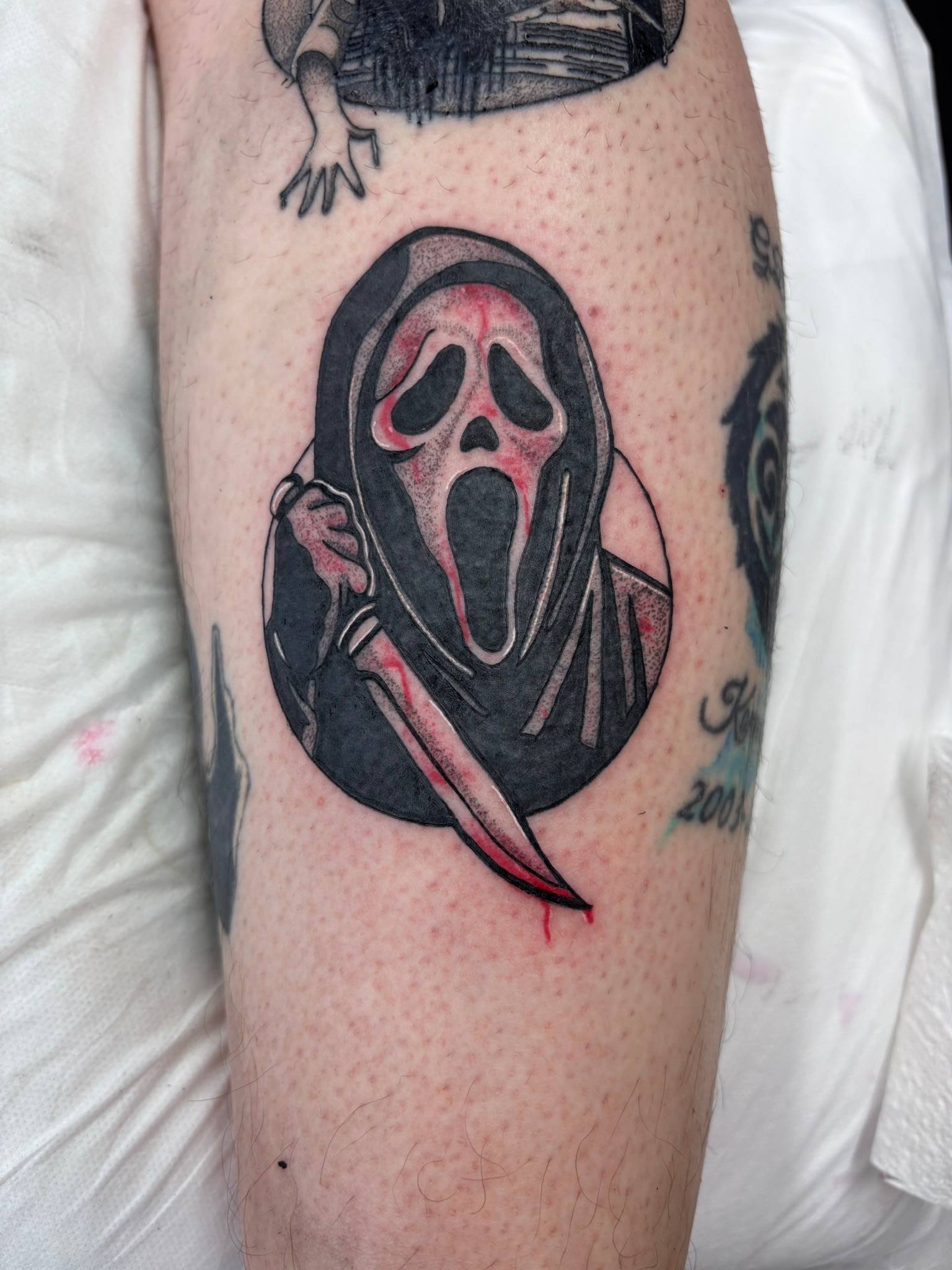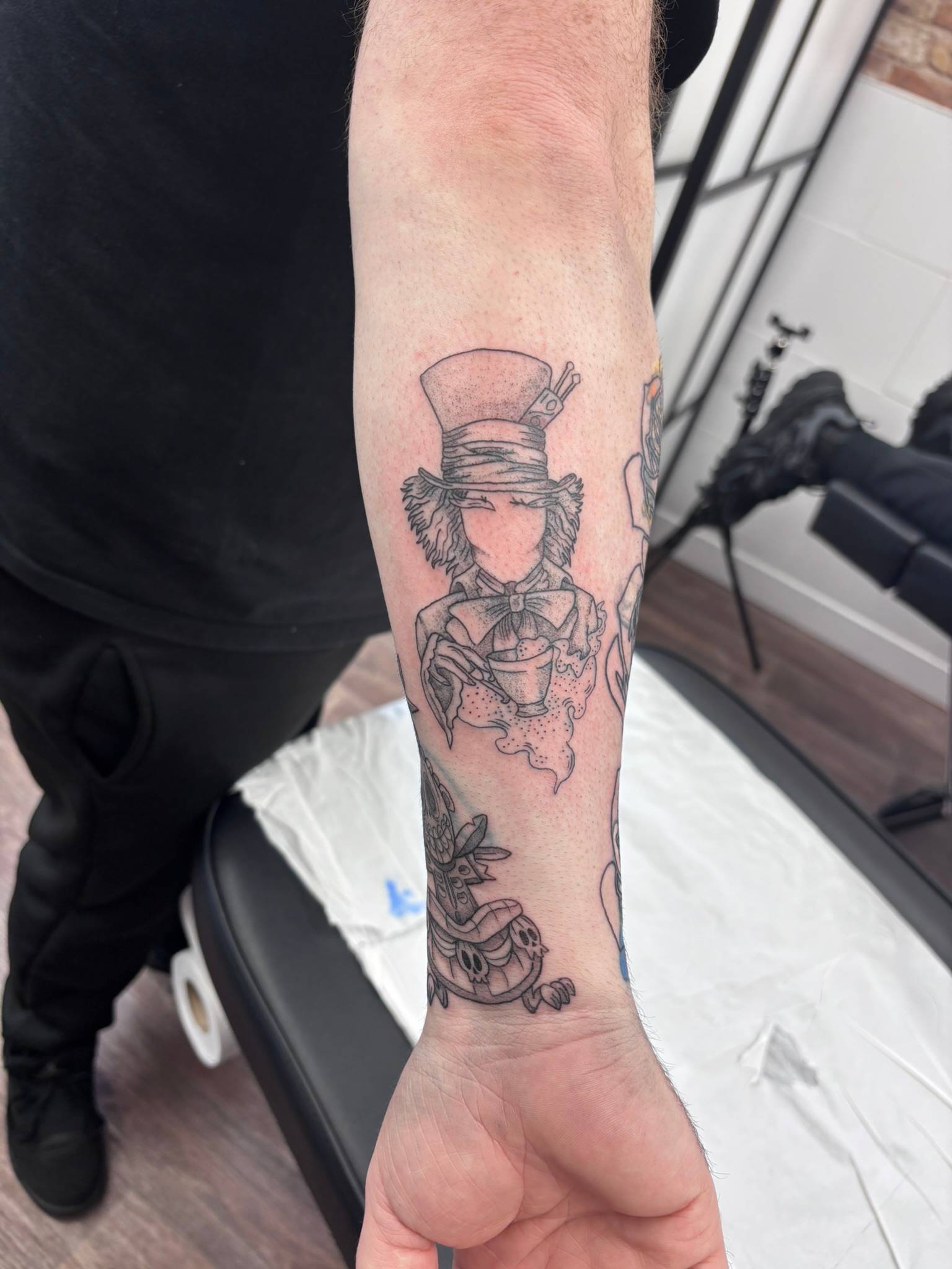 Daniel - The start to covering up an old tattoo, done by client themselves, with a gothic Grim Reaper -