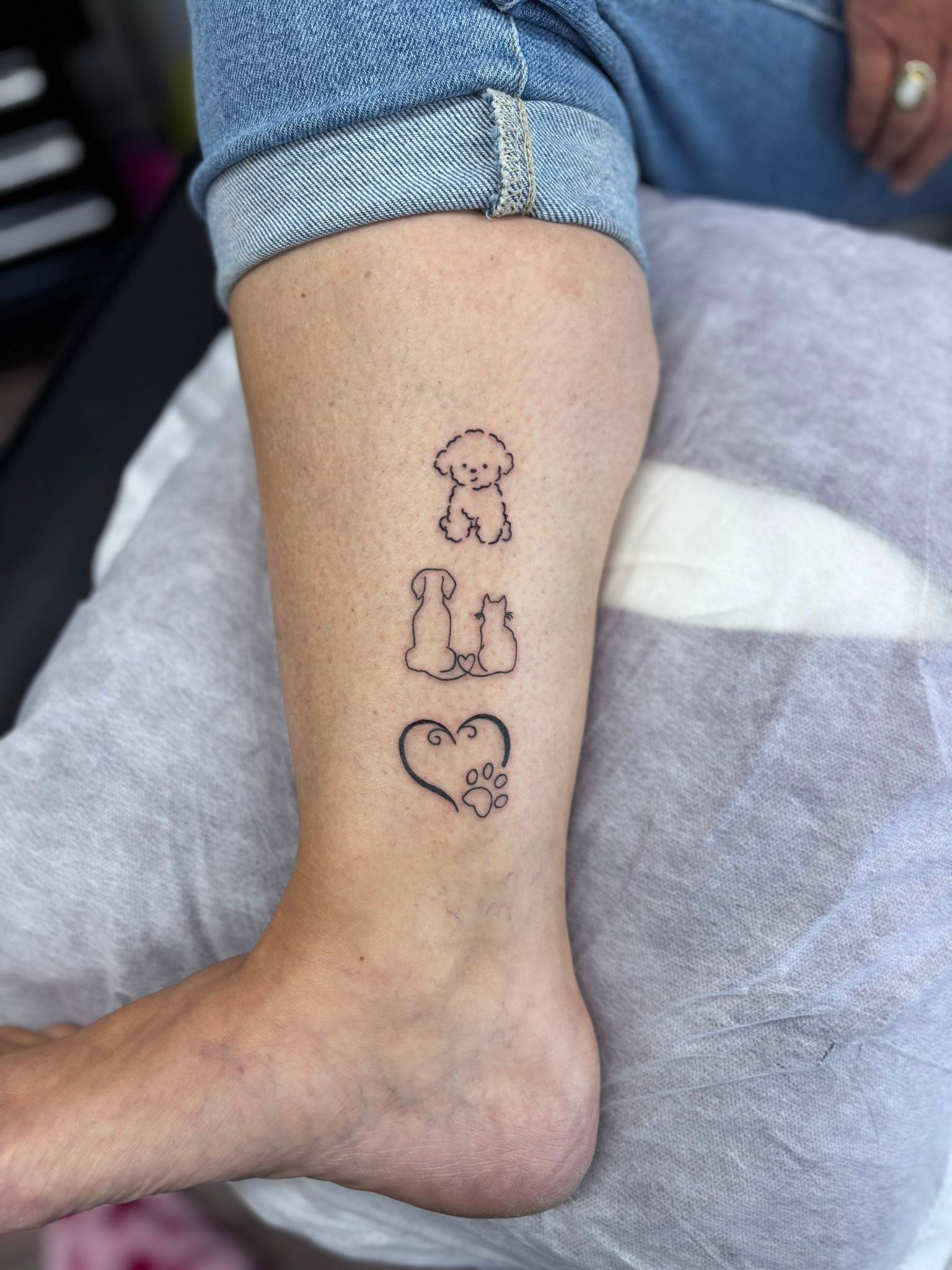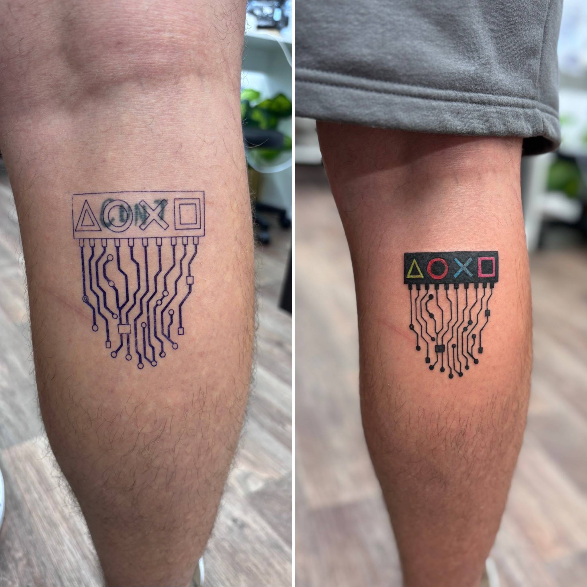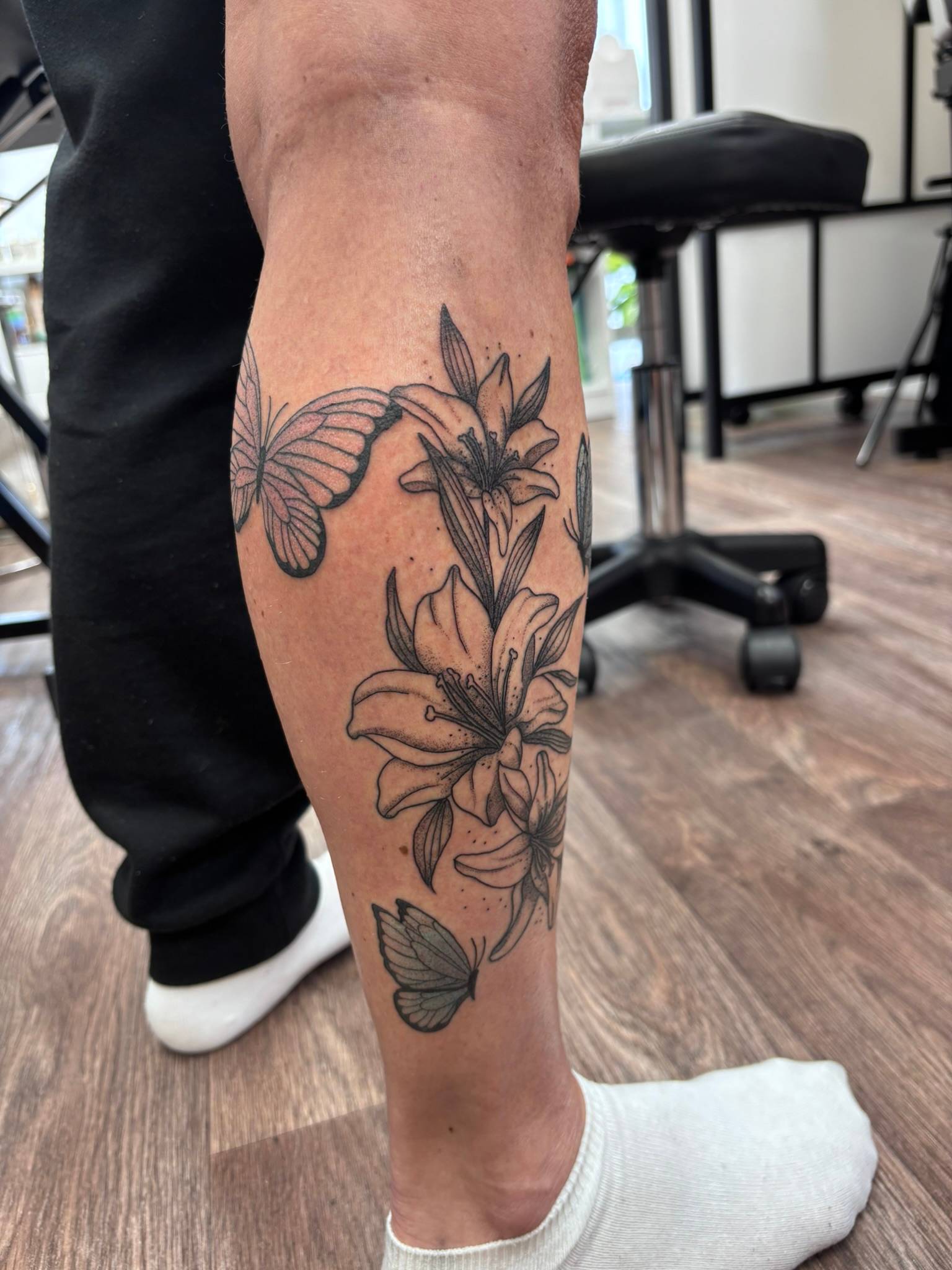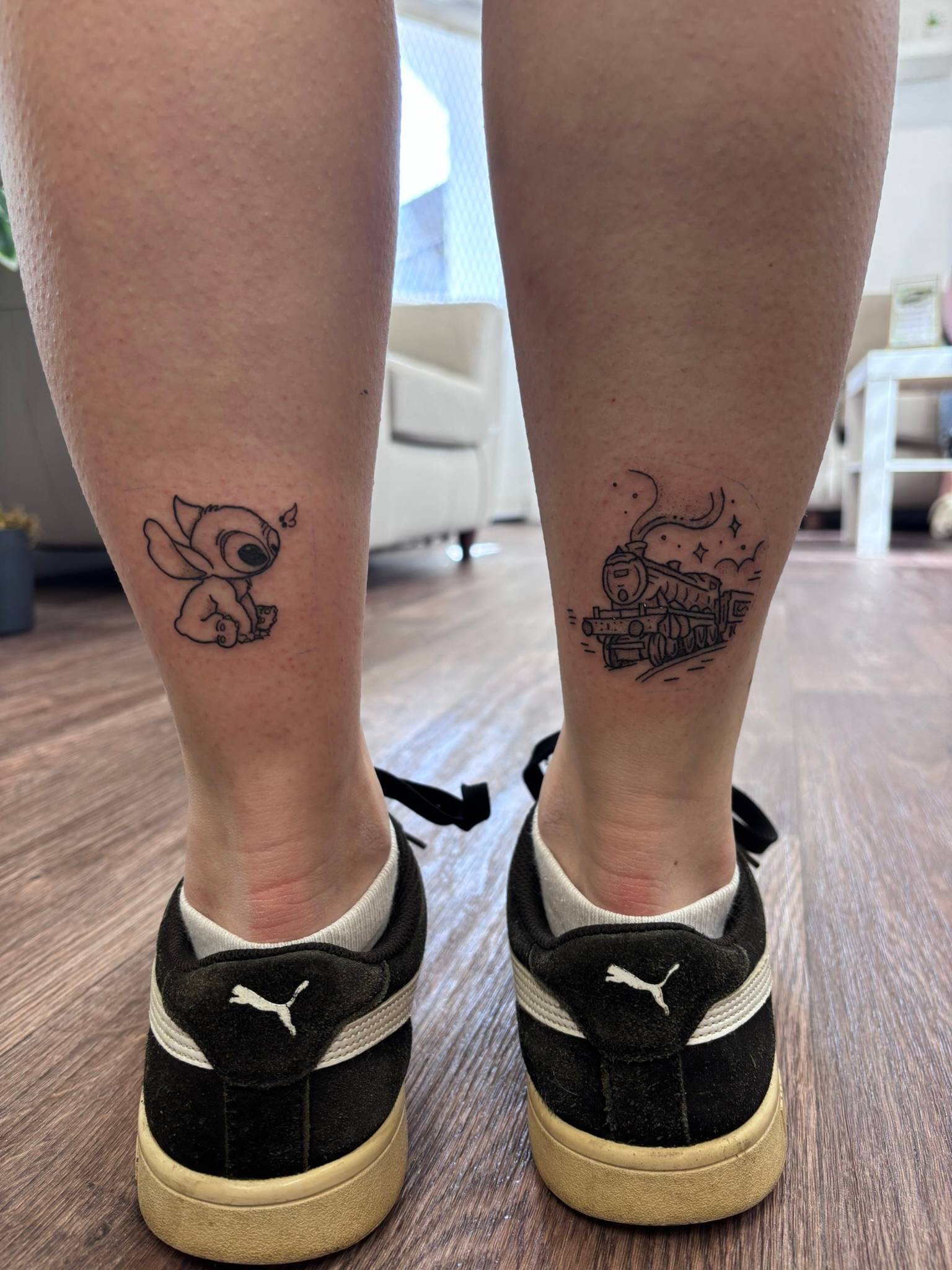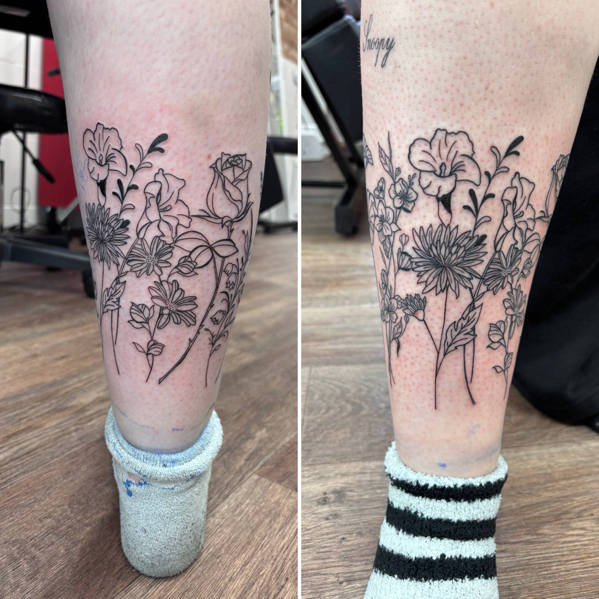 Nicole - Matching calf tattoos, dedicated to clients children -