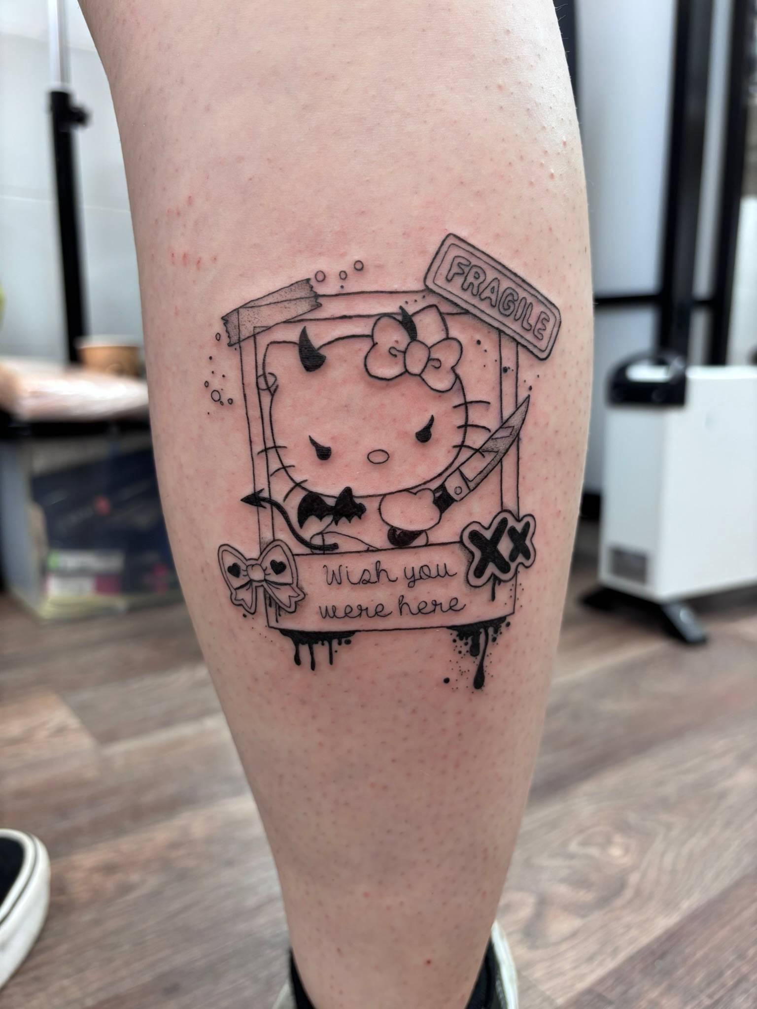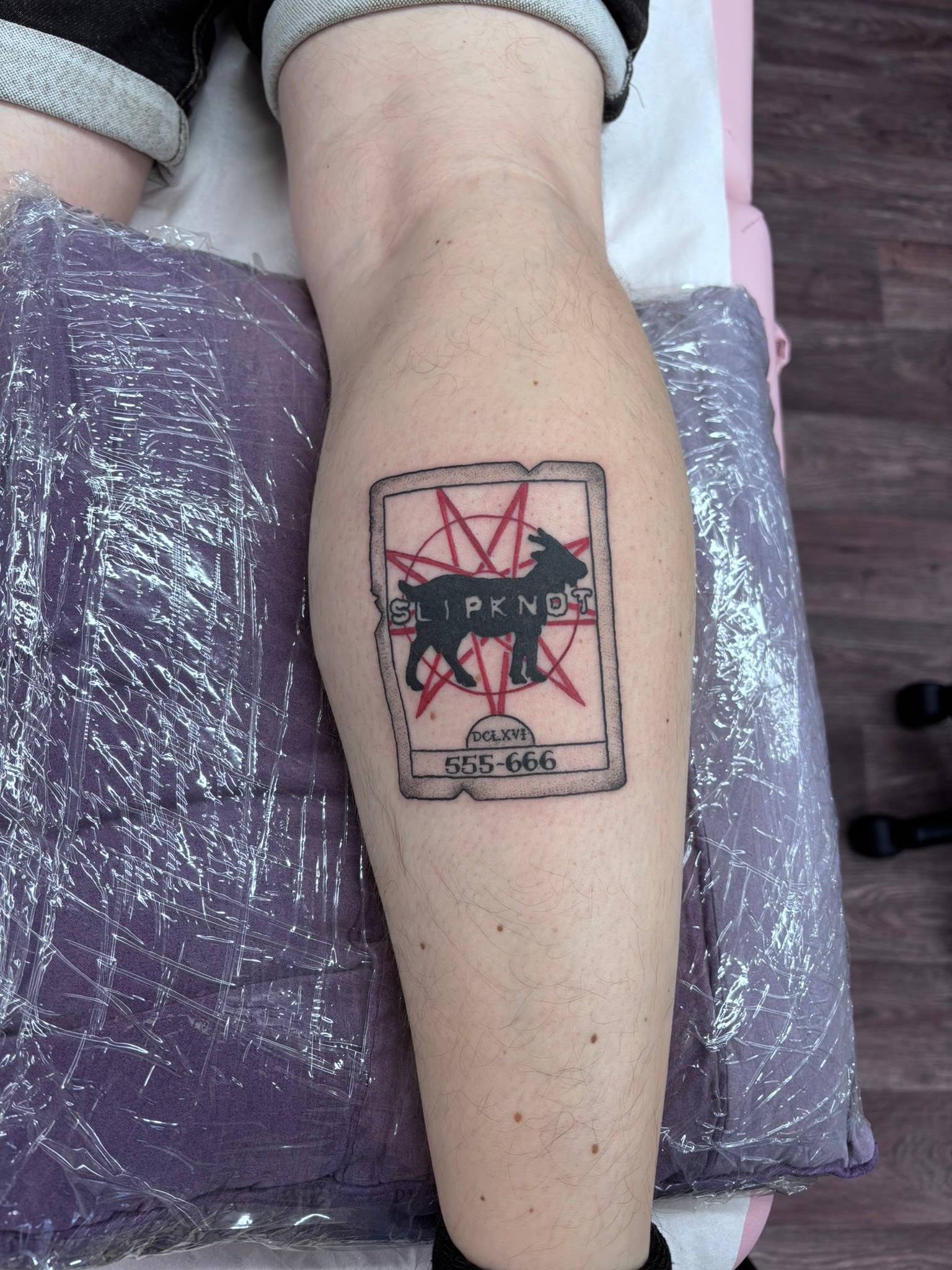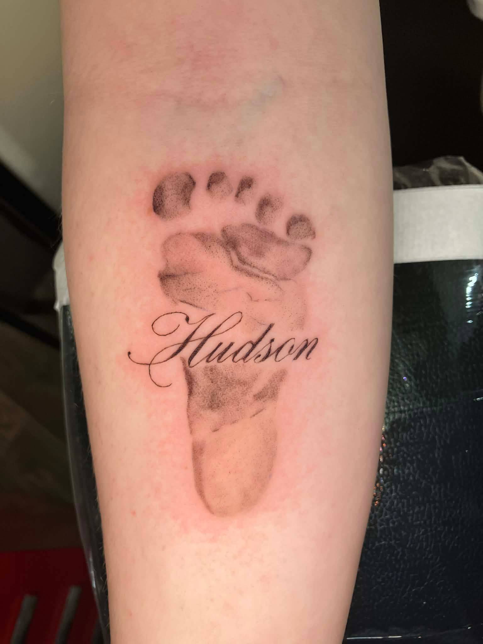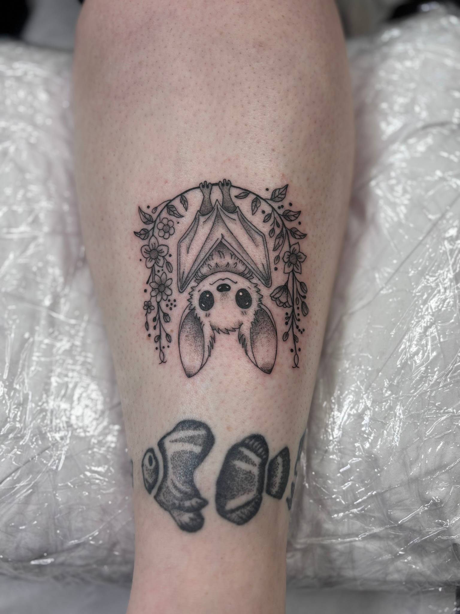 Nicole - Matching calf tattoos, dedicated to clients children -