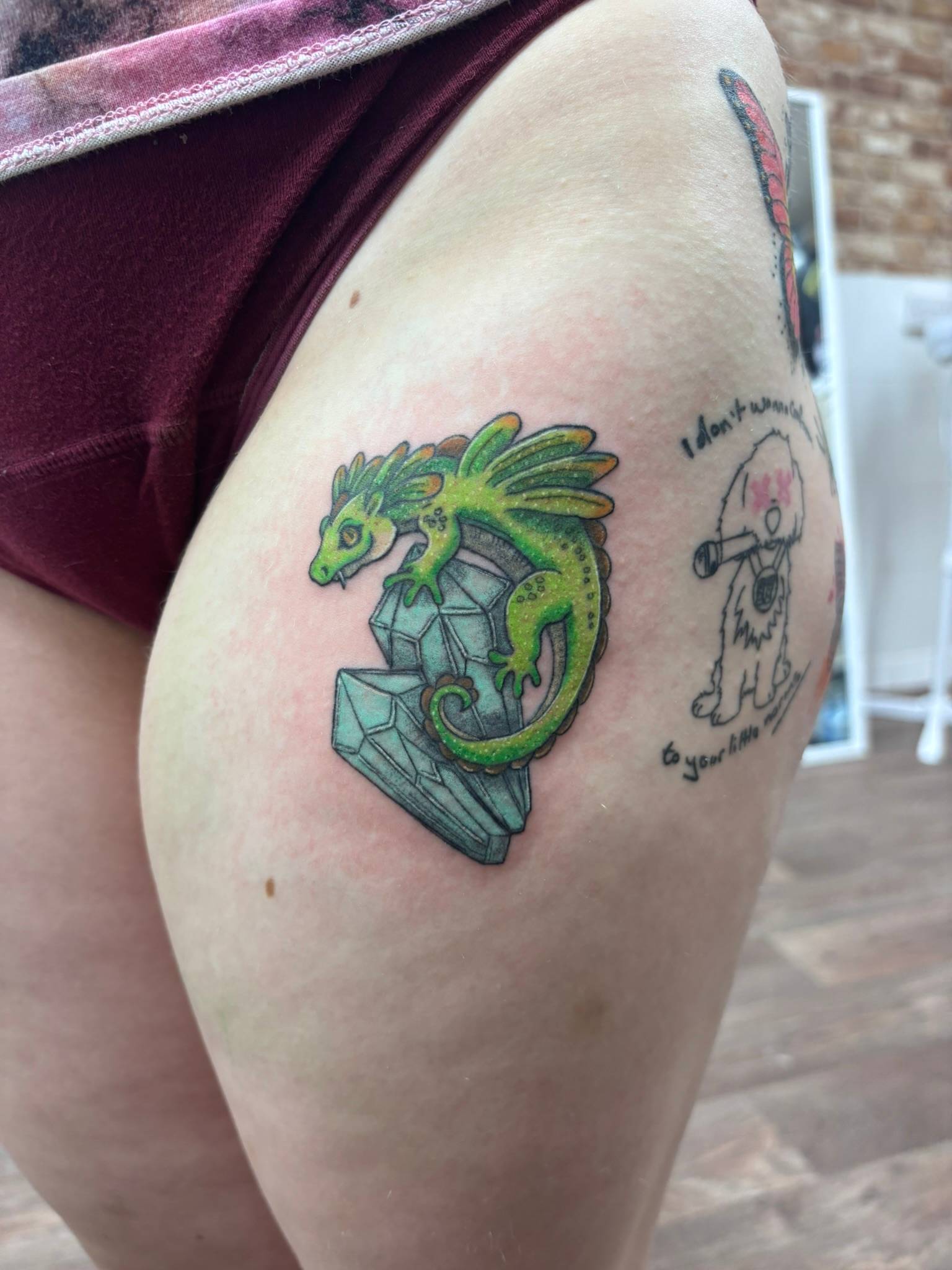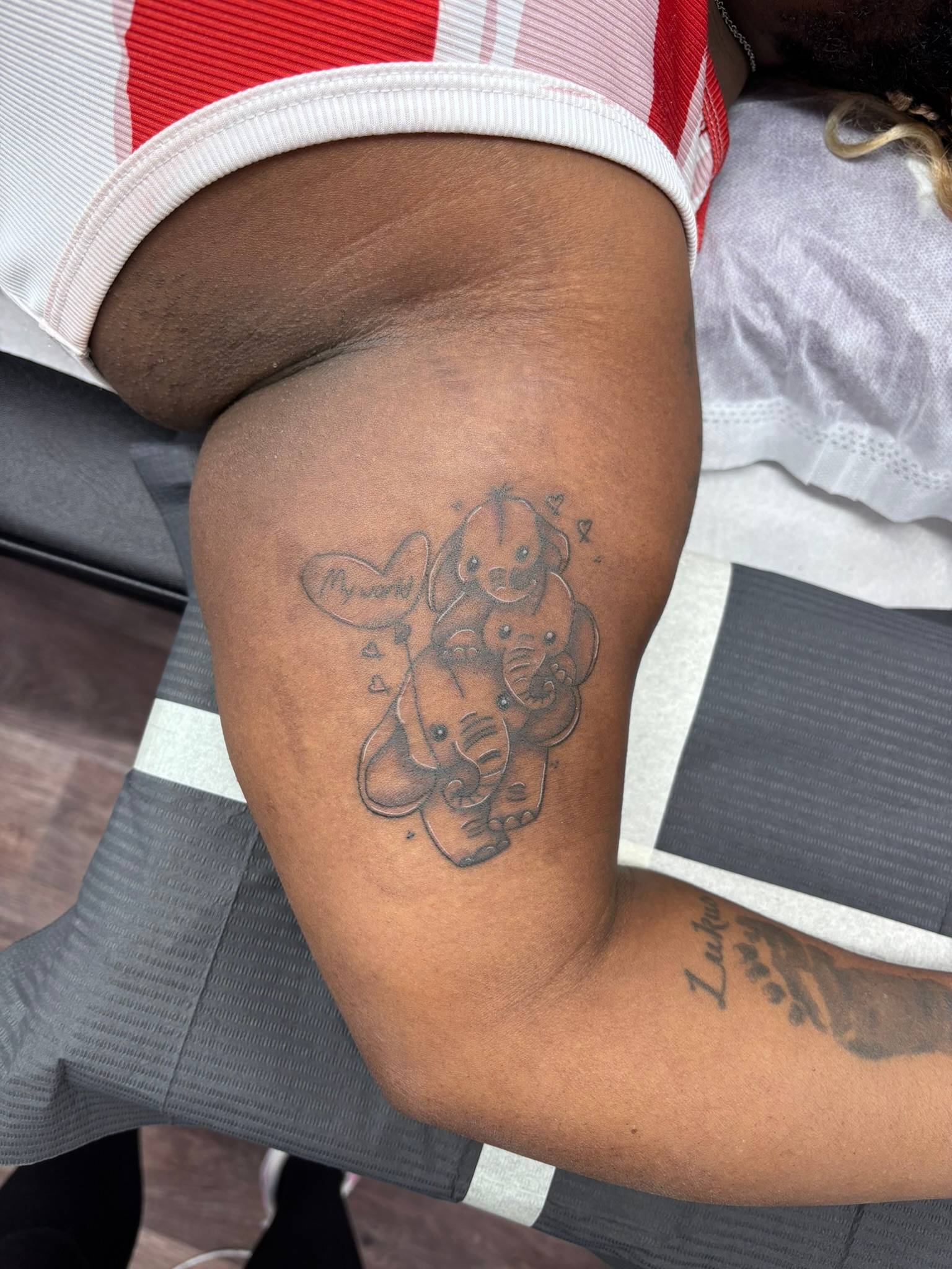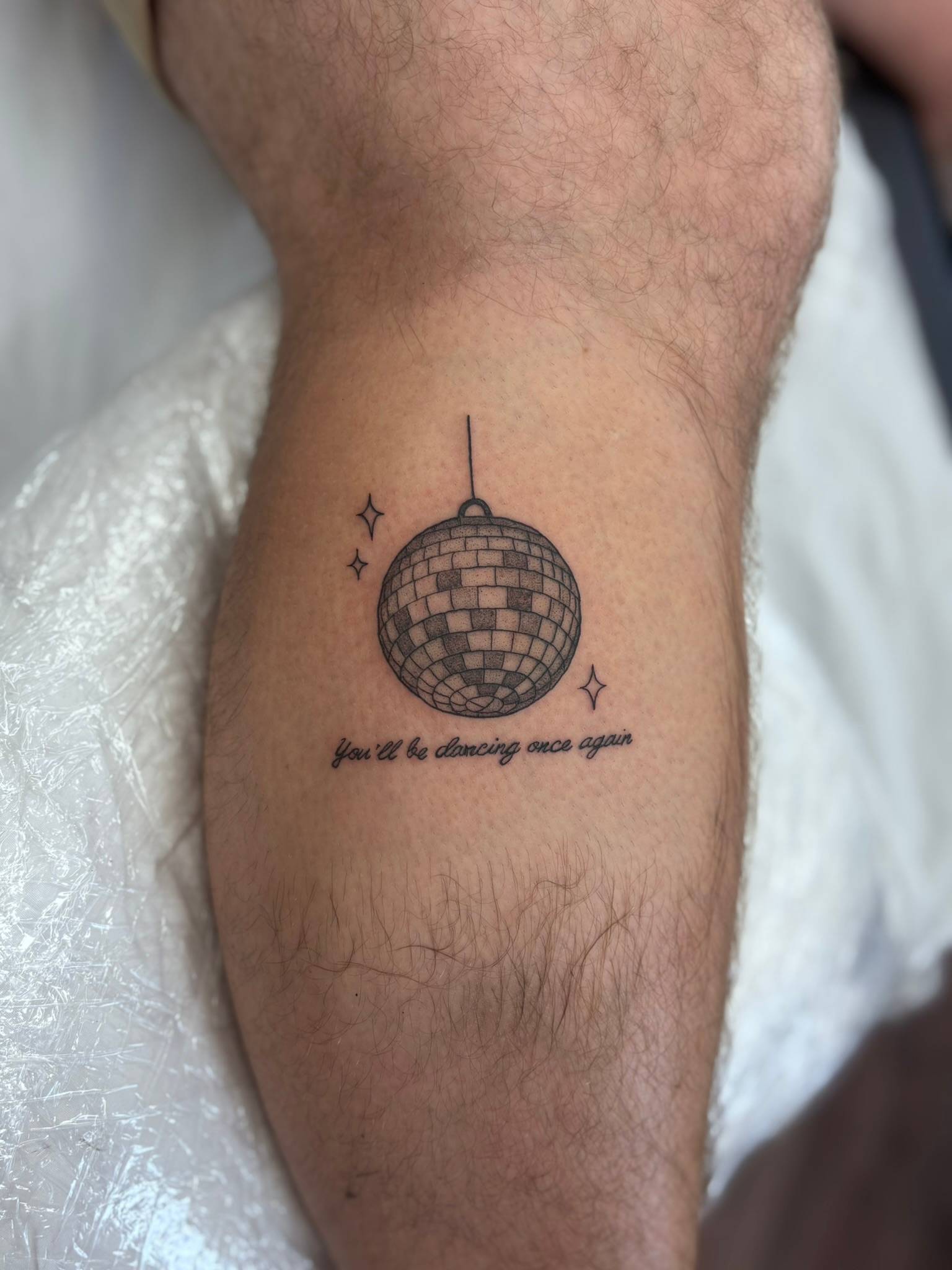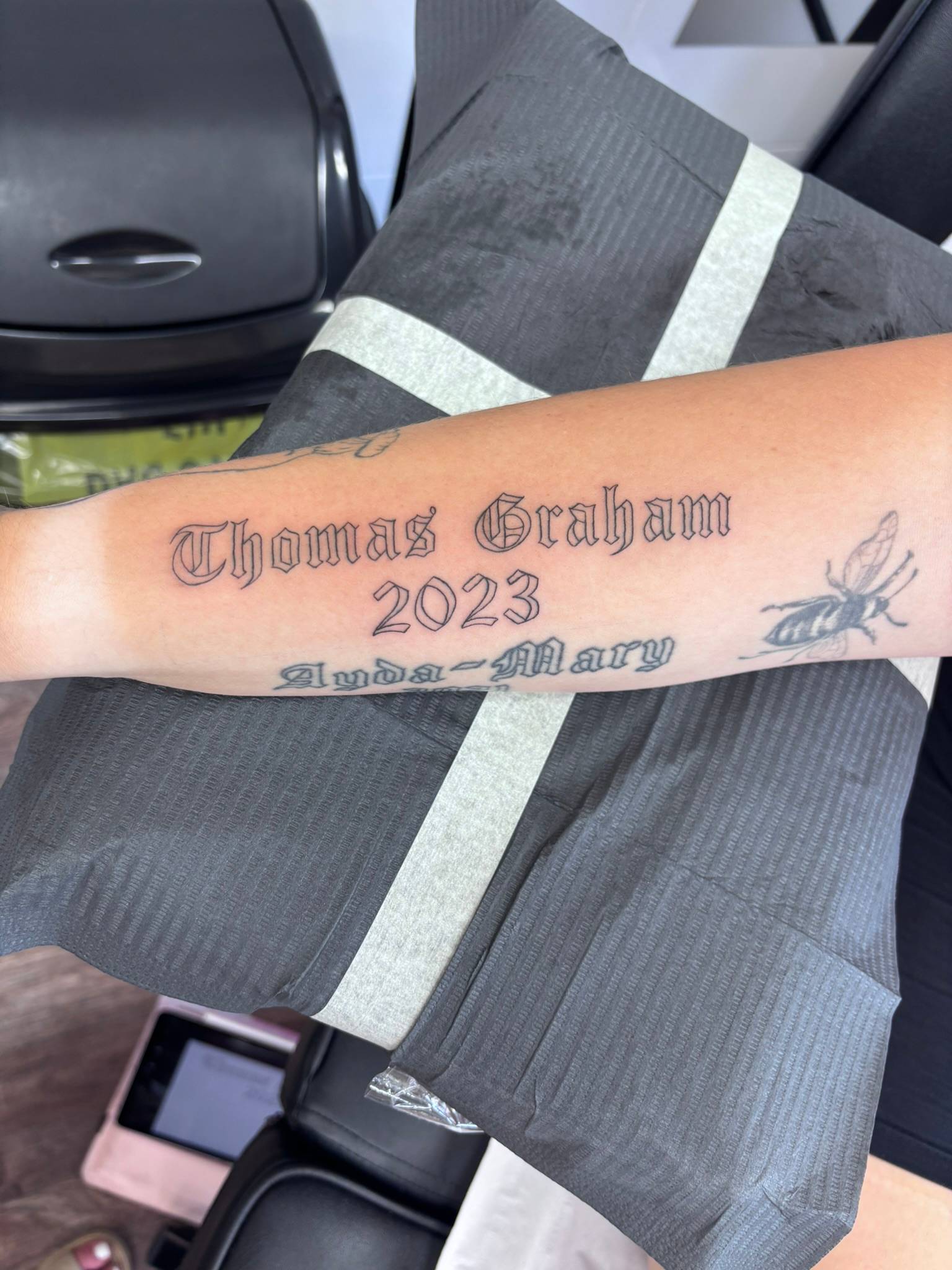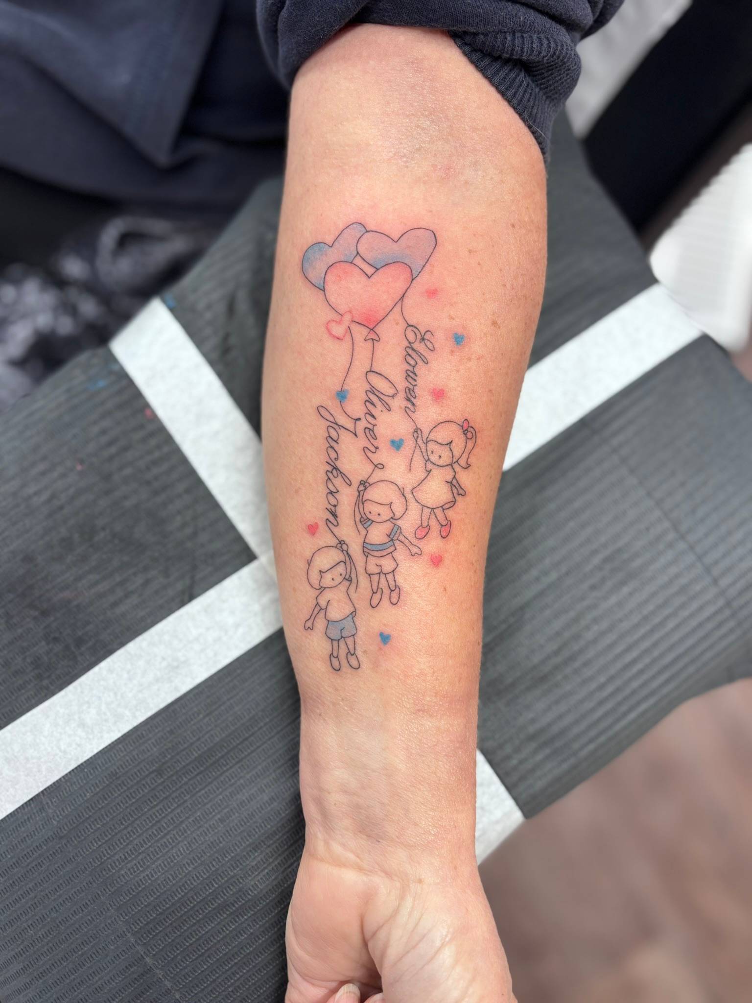 Nicole - Matching calf tattoos, dedicated to clients children -