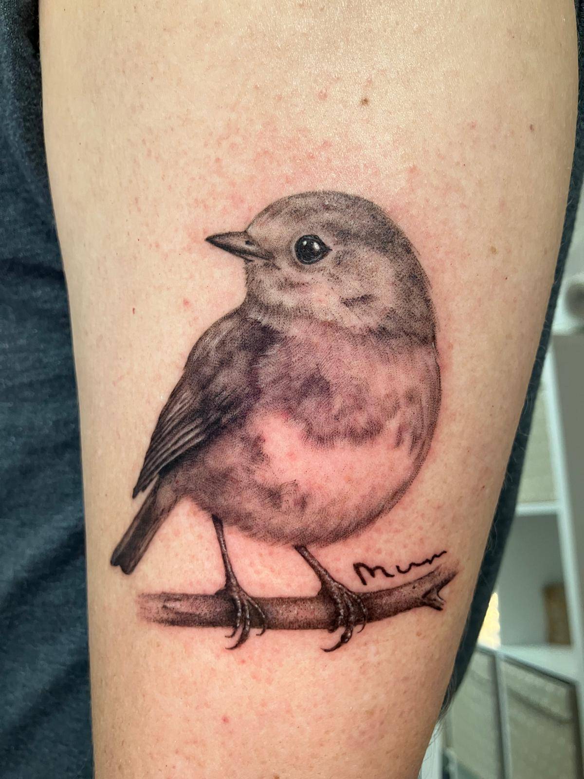 Daniel - Fine line realism sparrows on the inner forearm -