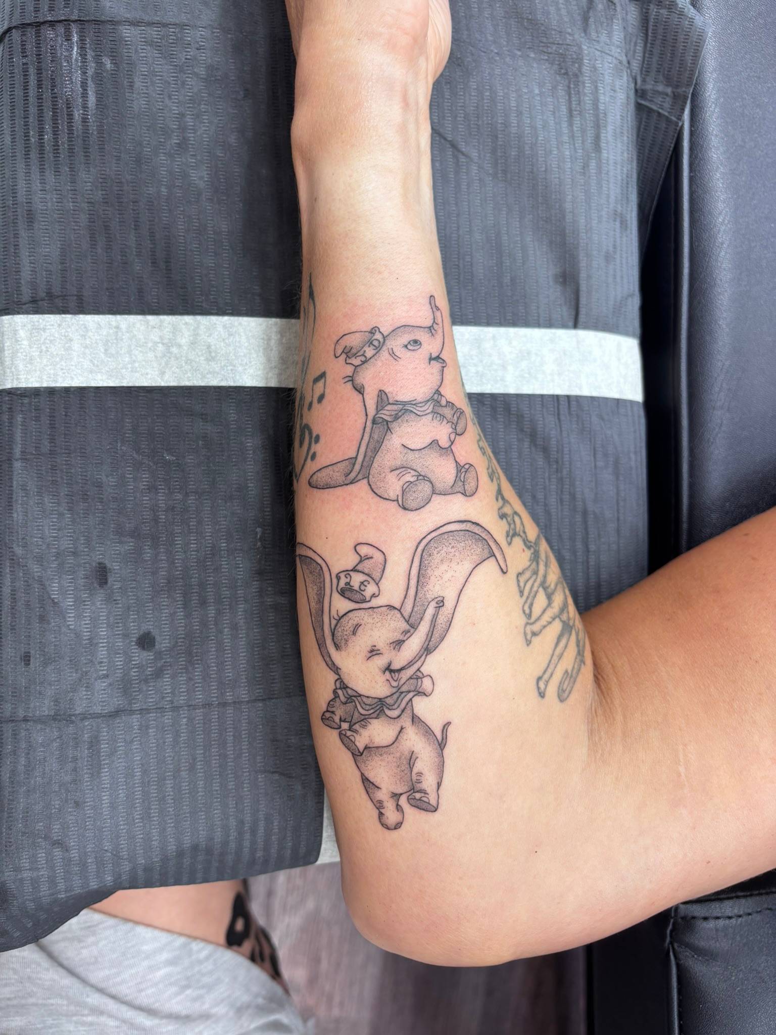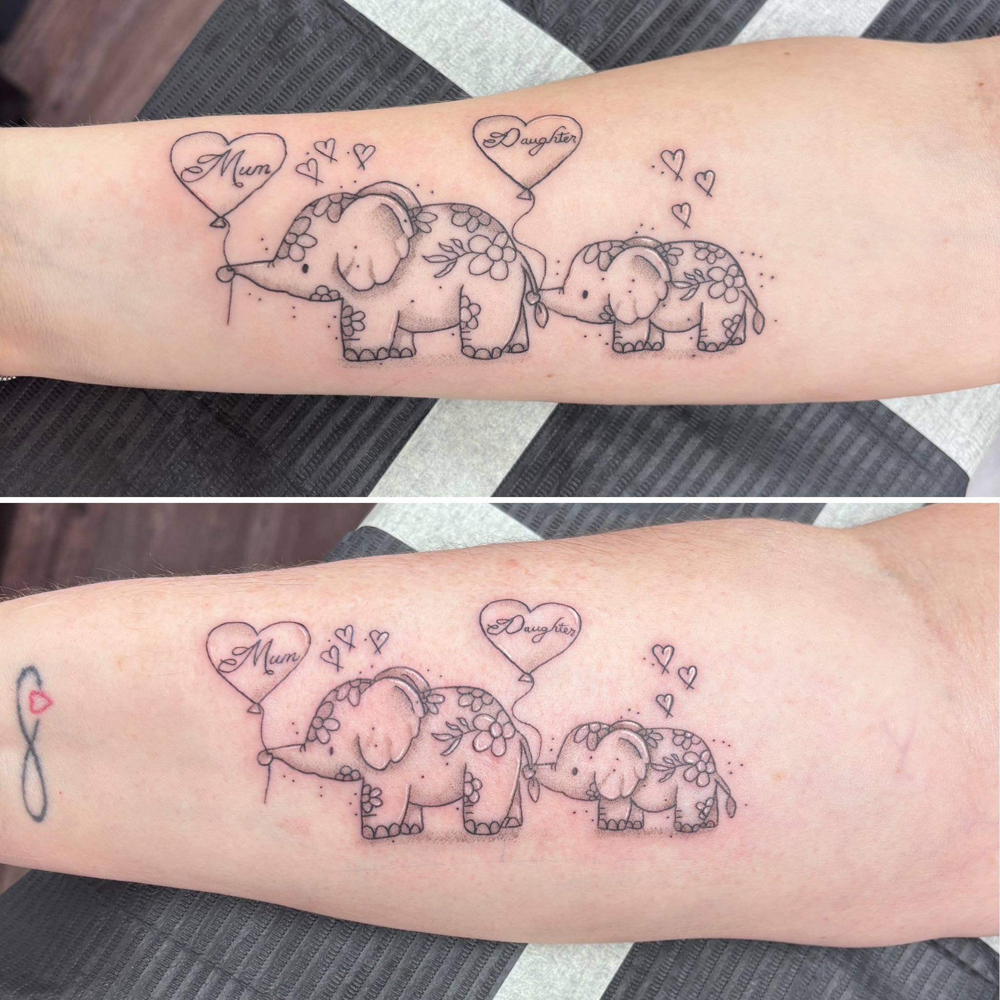 Nicole - Custom fine line floral elephants on the inner forearm -