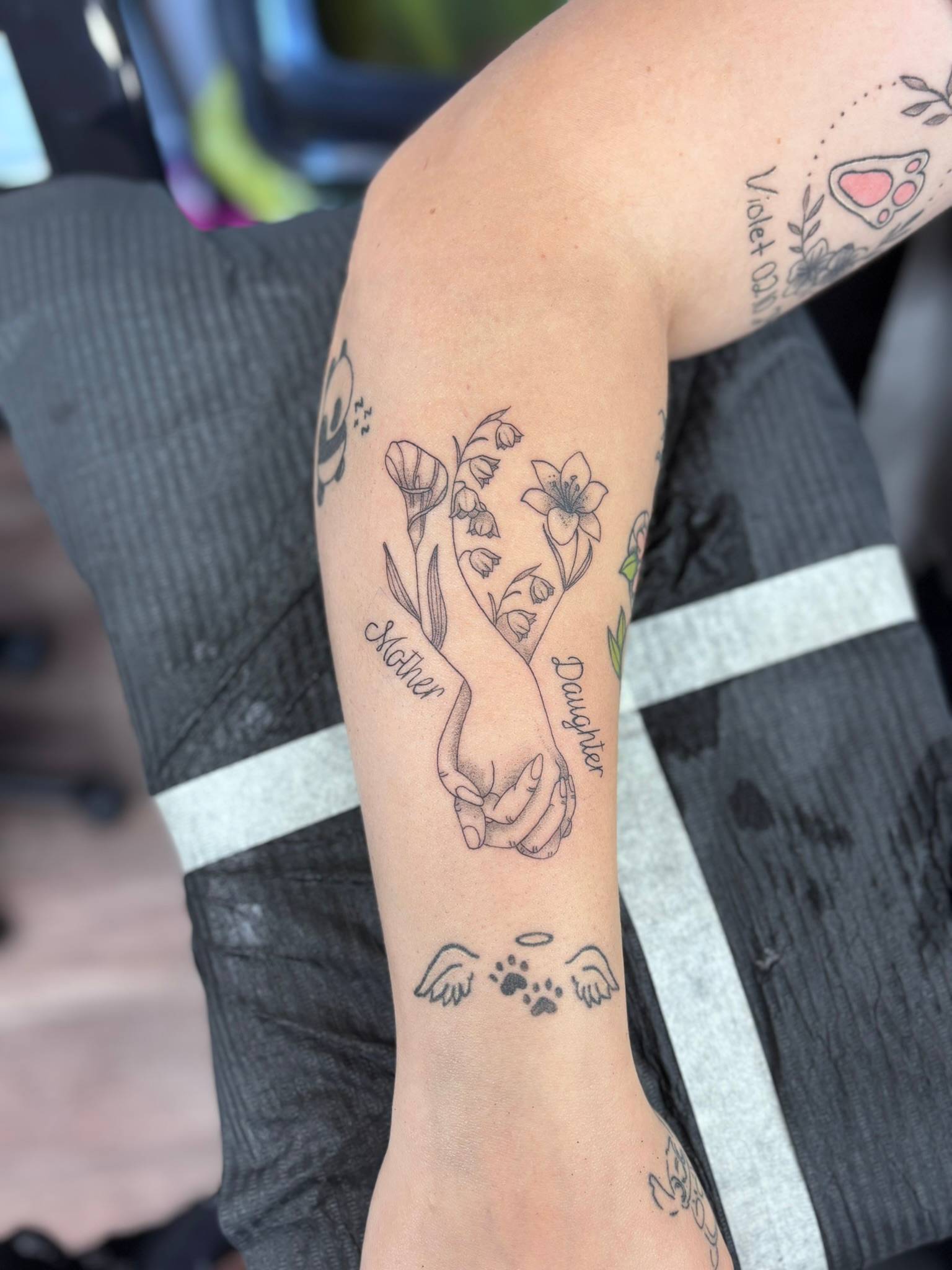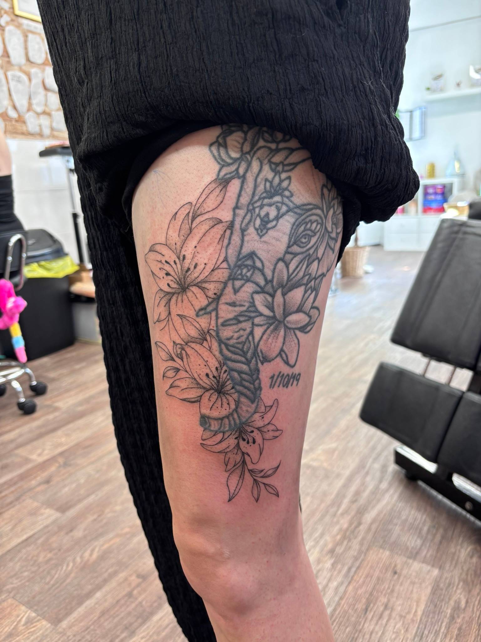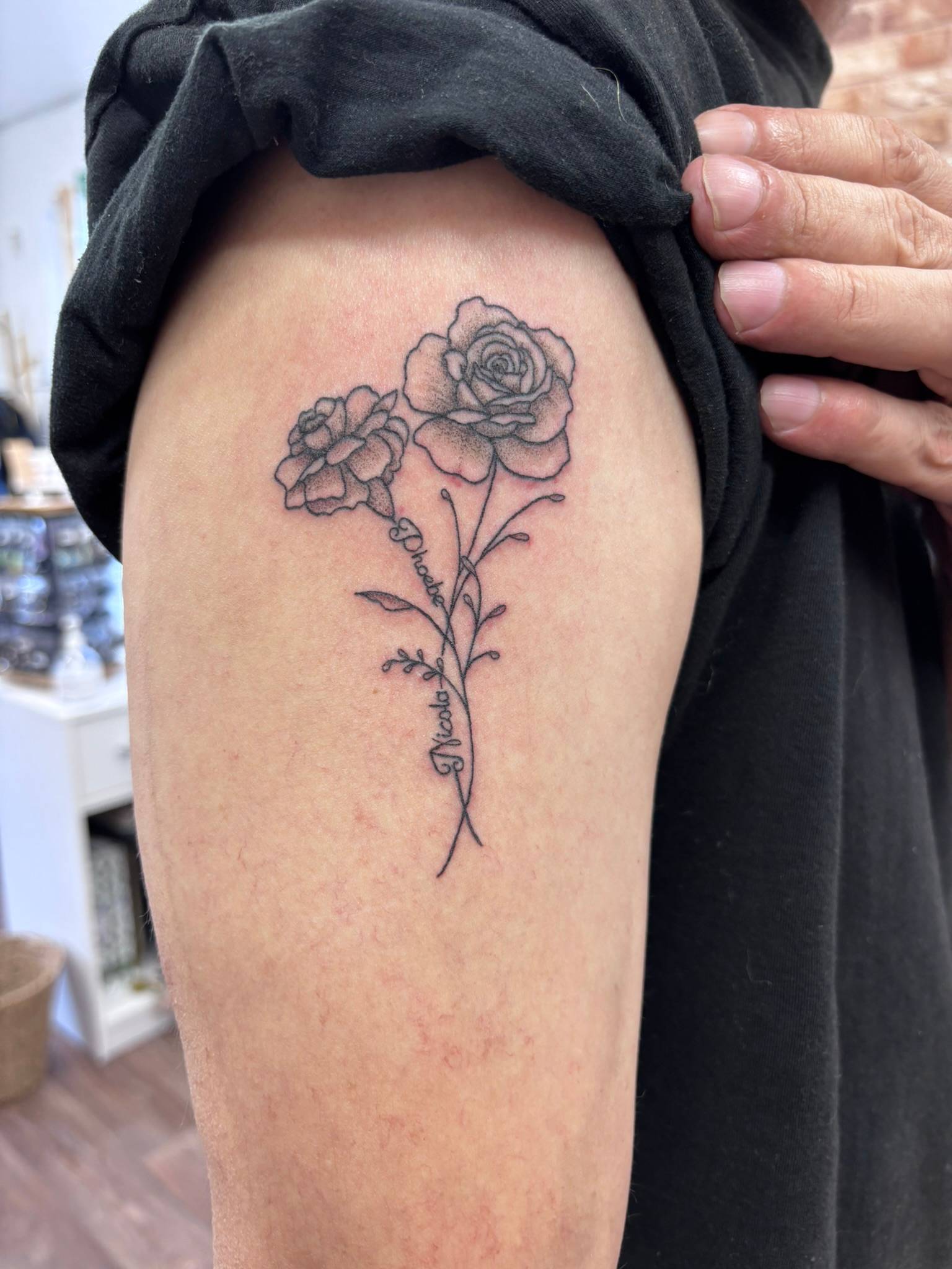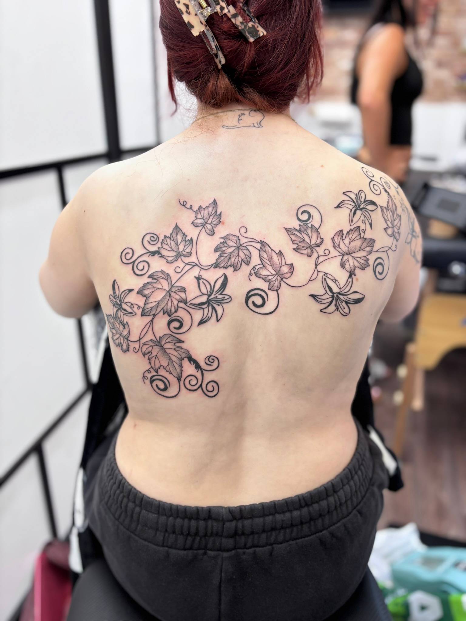 Nicole - Fine line floral work to compliment previous tattoos -