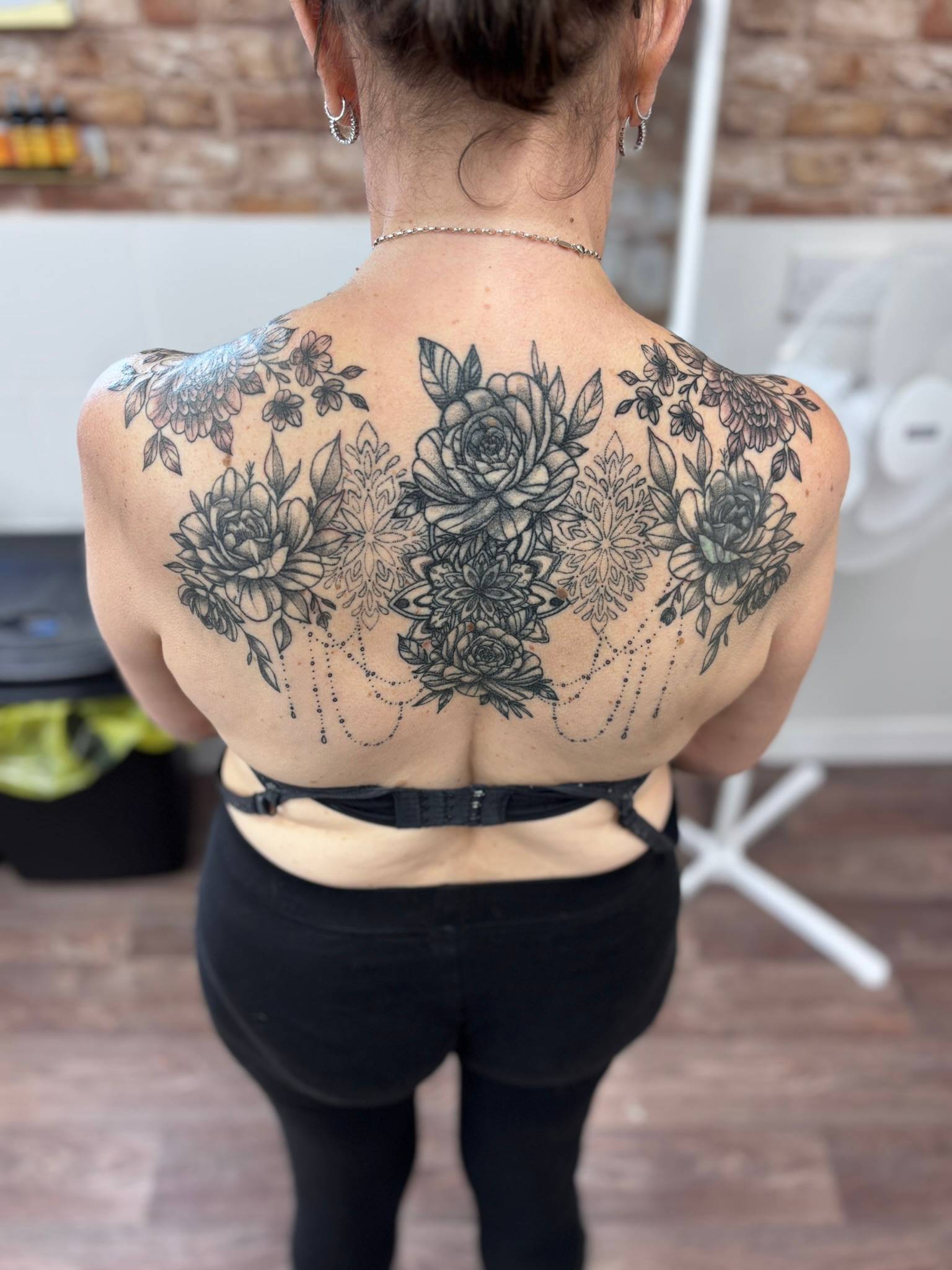 Nicole - Bold black & grey roses, intricate mandala elements & delicate dot work -