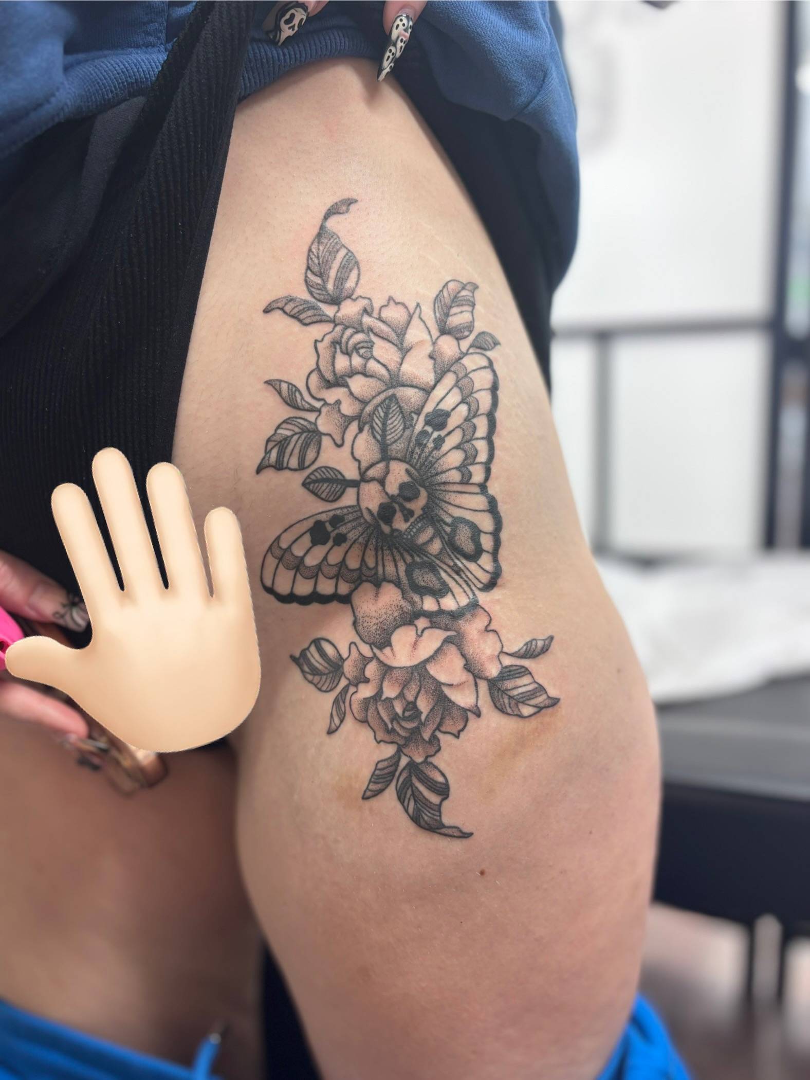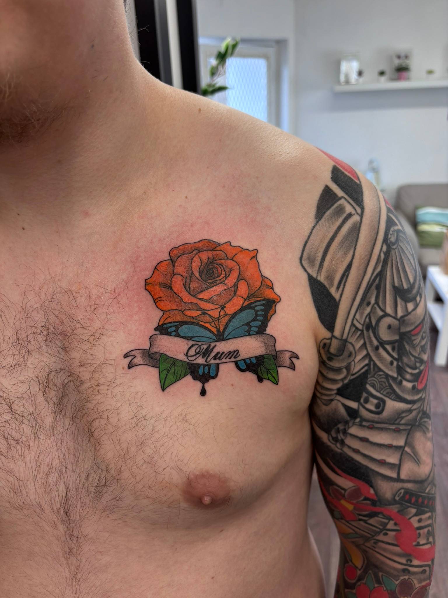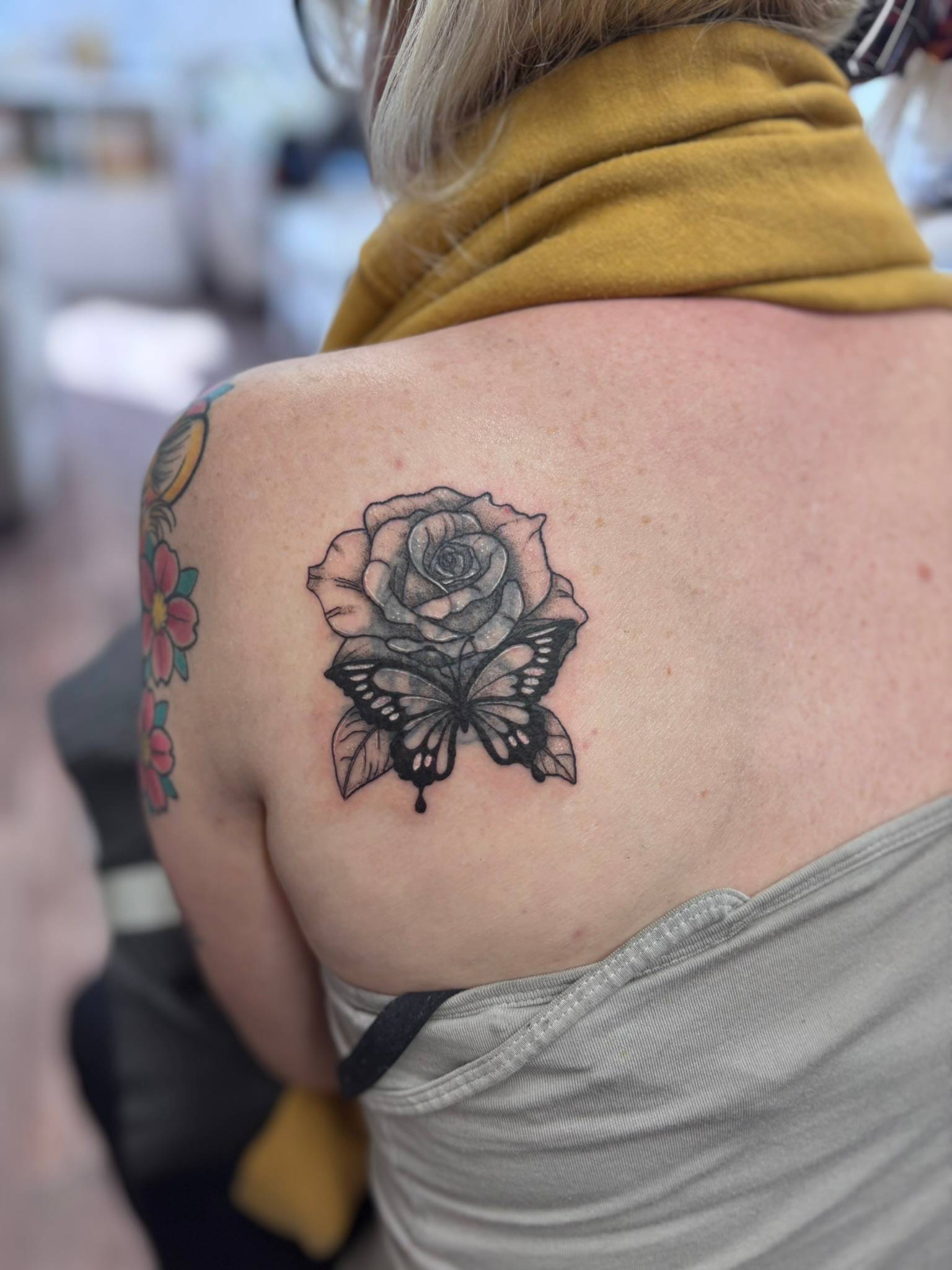 Nicole - Rose & butterfly cover-up designed to soften and conceal existing work -
