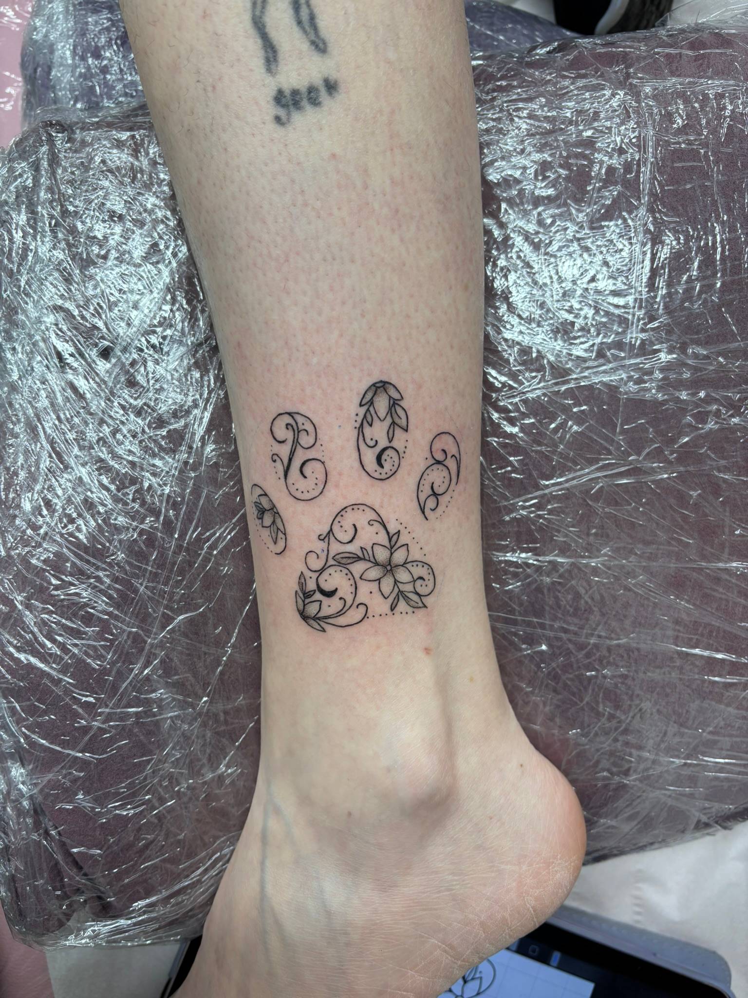 Nicole - Custom fine line anklet tattoo, in memory of loved one -