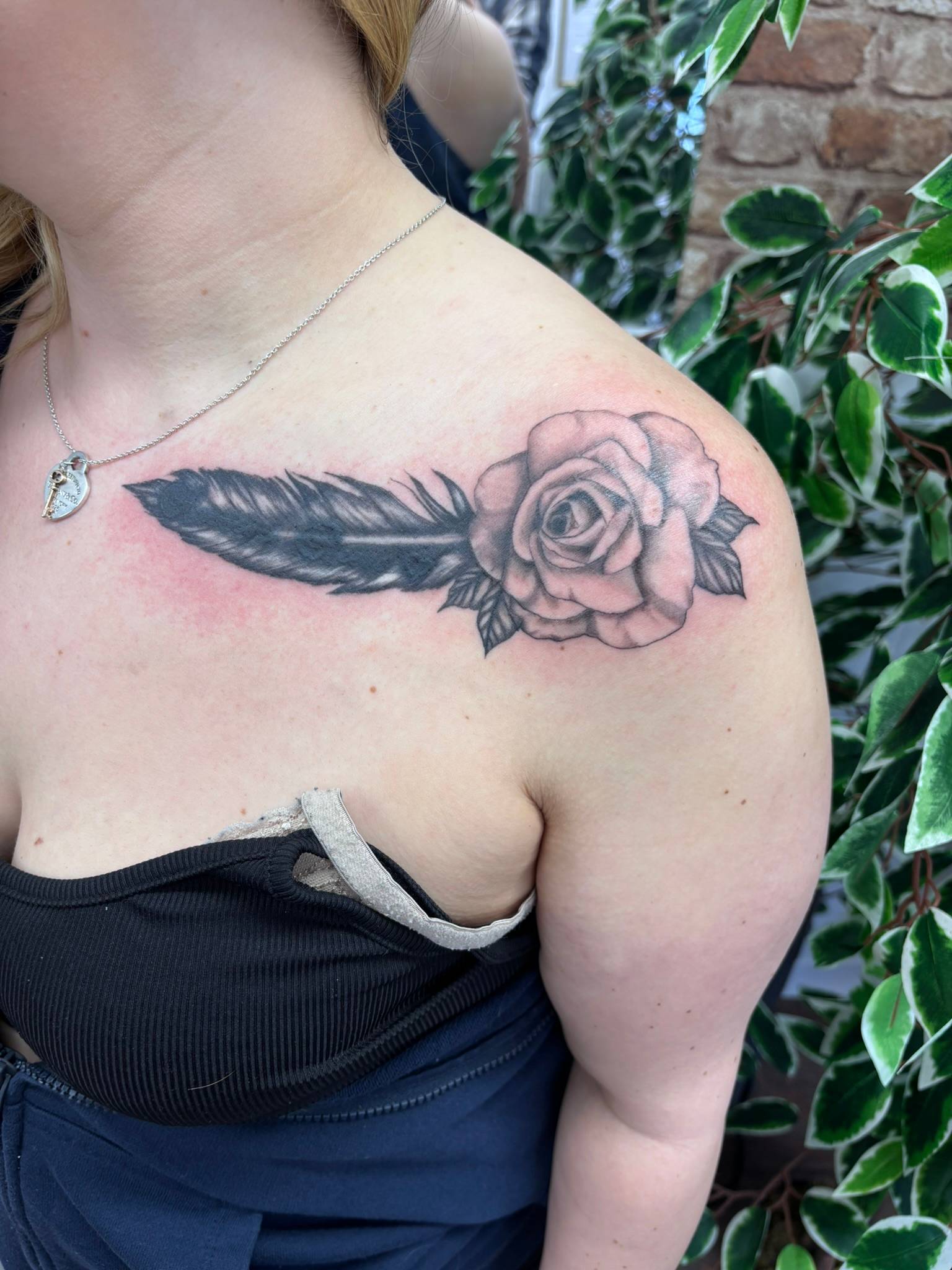 Daniel - A beautiful realistic rose and feather to cover up an old, deep tattoo -