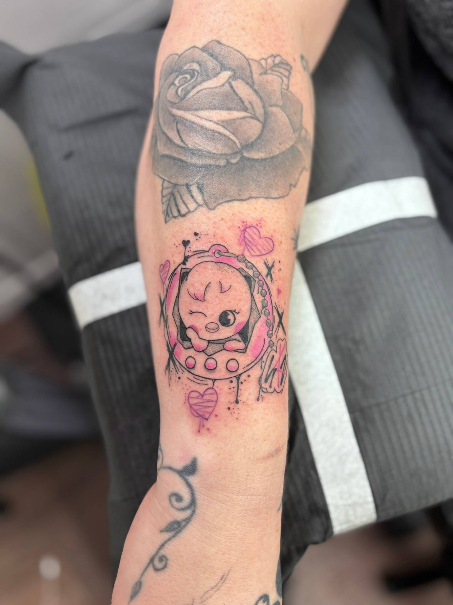 Daniel - Custom realistic skull and rose added to a forearm sleeve -