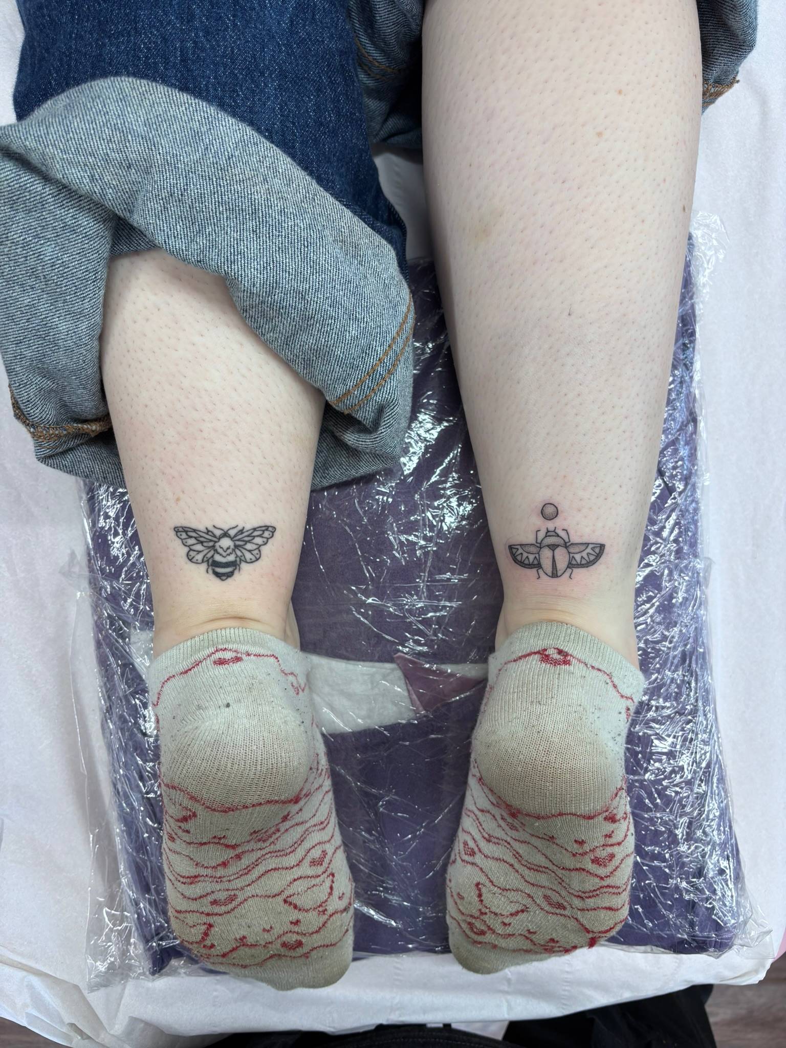 Nicole - A bee & scarab on the backs on the ankles -