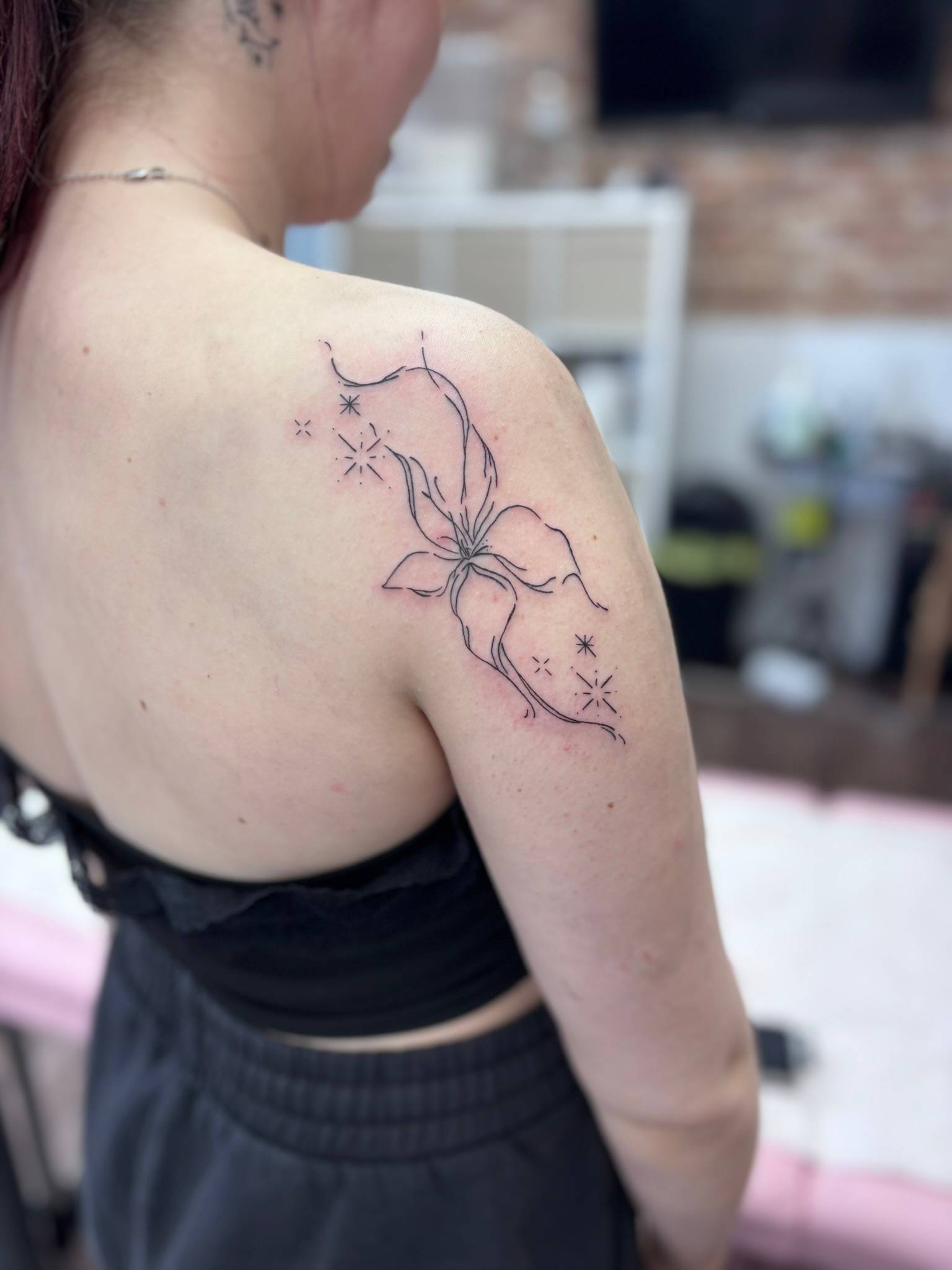 Nicole - Delicate fine line lily, flowing with the natural curve of the shoulder -