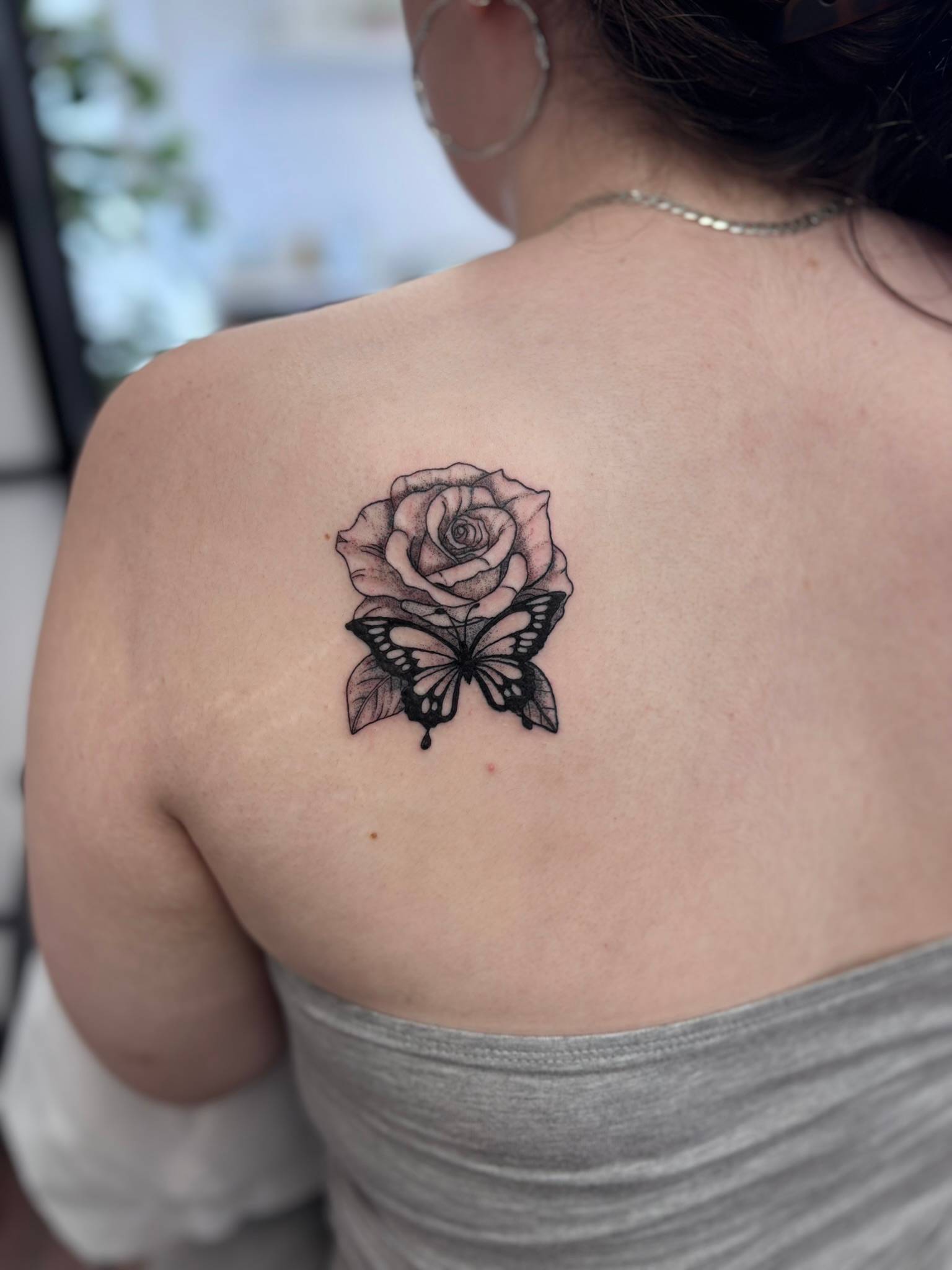 Nicole - Black & grey roses with soft shading and fine line, elegant & feminine -