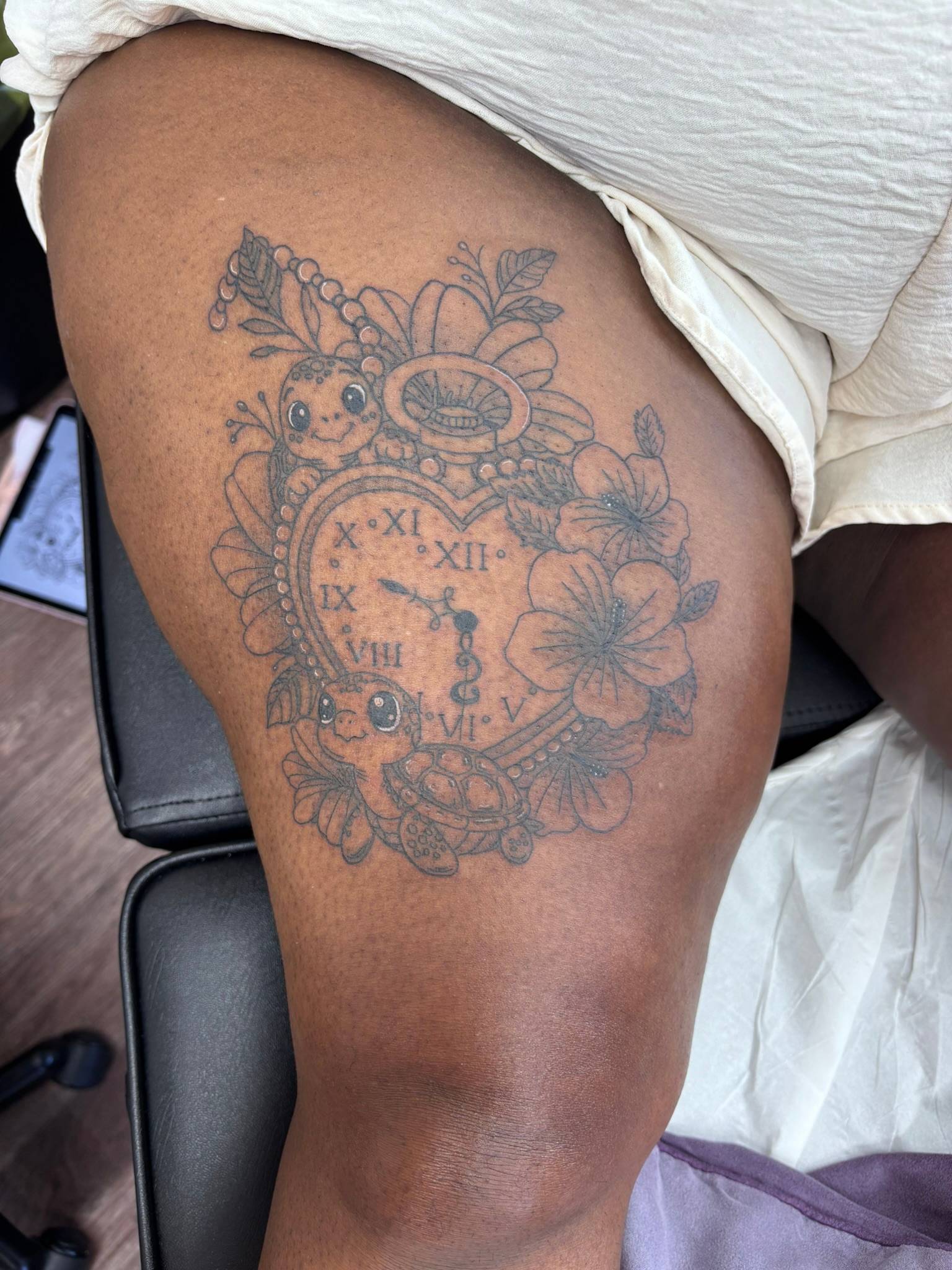 Nicole - Whimsical heart-shaped clock, delicate florals and playful turtles -
