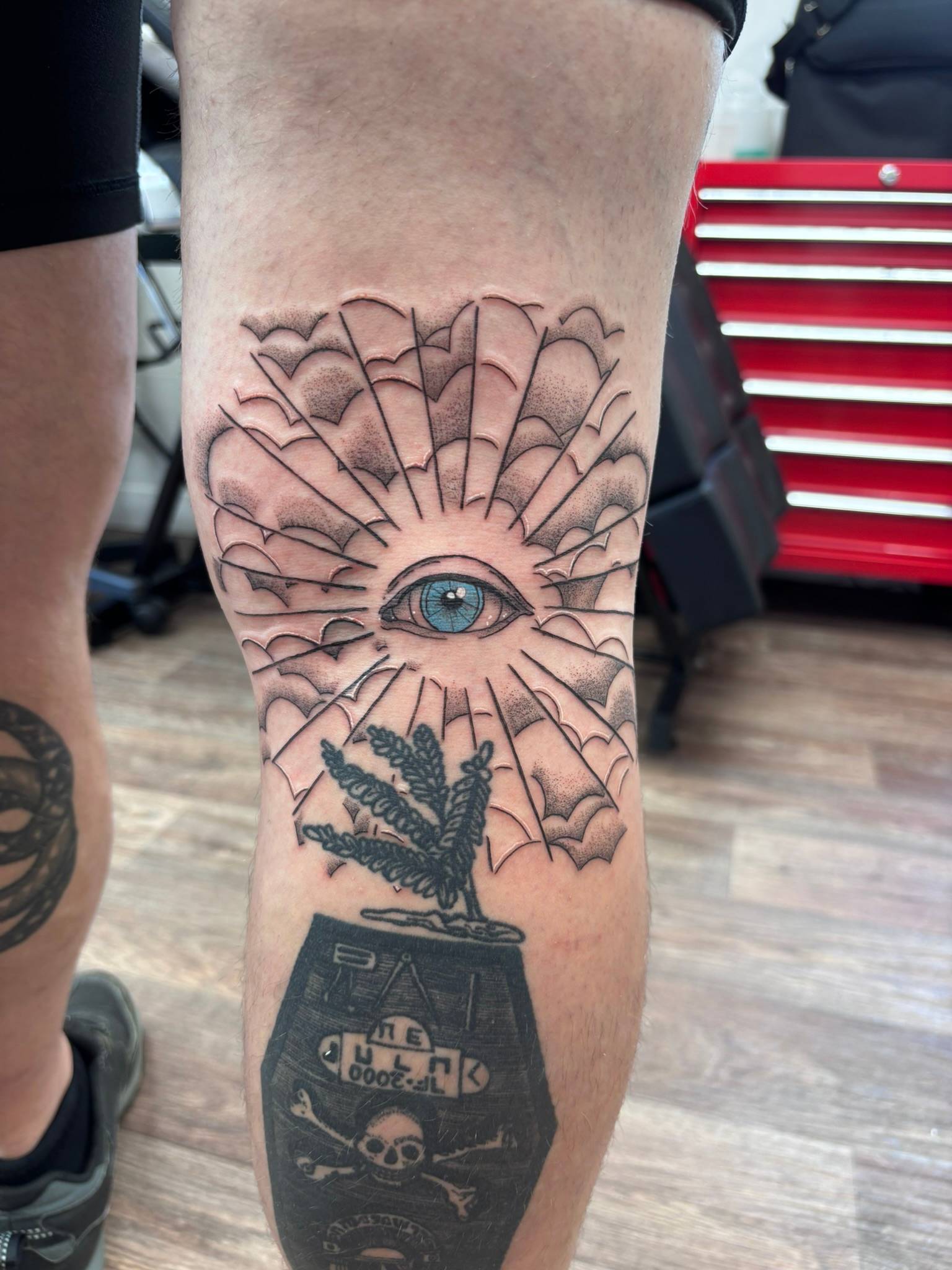Daniel - Matching System Of A Down lyrics combined into a custom coffin on the thigh -
